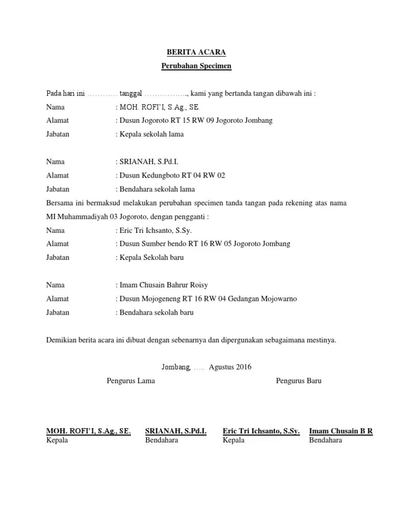 surat permohonan perubahan specimen kepala sekolah akta kelahiran surat. contoh surat pernyataan selamat datang di portal hidupsimpel pada kesempatan kali ini kita akan membahas lengkap 11 contoh surat pernyataan saya kalau buat tidak nanggung nanggung. 100 gambar buku cek giro hd infobaru. contoh surat perubahan speciment di bank nomor. contoh surat pergantian specimen bank bni bri mandiri. Semoga contoh surat ini dapat melengkapi administrasi anda. Itulah yang dapat kami bagikan terkait contoh surat perubahan specimen tanda tangan bank. Contohsuratid stempel adalah cap atau tera yang digunakan dalam suatu pengesahan seperti yang digunakan pada pengesahan data catatan surat ijazah sertifikat nota dan masih. Doc surat rekomendasi pembukaan rekening bank titi. Setiap kita bertransaksi di bank specimen sangatlah penting dalam urusan penarikan uang melalui teller. surat yang akan saya bagikan pada kesempatan ini adalah tentang surat keterangan. Untuk anda yang mencari terkait permohonan cek wasiat, pembatasan, pemblokiran, dan pertukaran tanda tangan cek, serta code bank. Syarat perubahan specimen tanda tangan bri lebih simpel dari bank jatim.